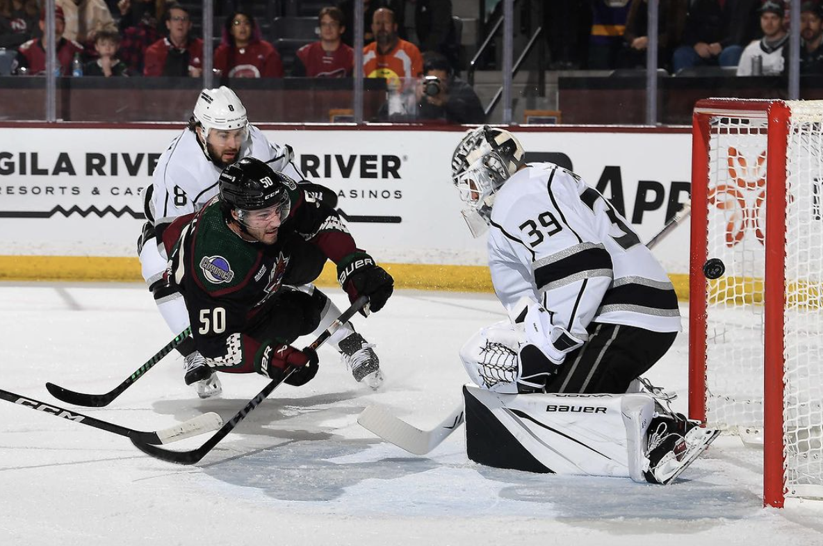 Sean Durzi has had a breakout year with the Arizona Coyotes. Following 27 and 38-point campaigns with the Los Angeles Kings, the defenseman is now scoring at a 50-point pace in his first season in the desert.